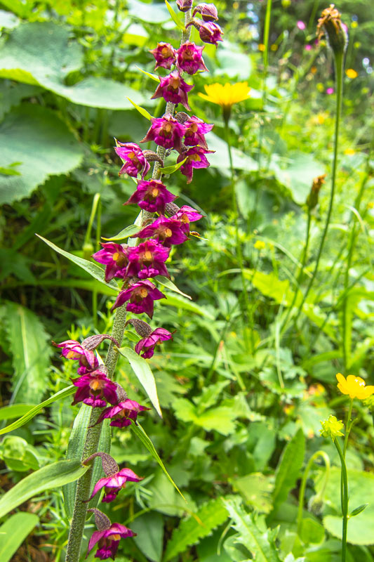 I discover this wonderful flowrishing dark-red helleborine (Epipactis atrorubens) on the descent.