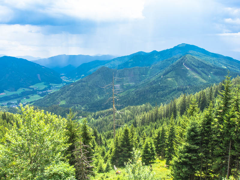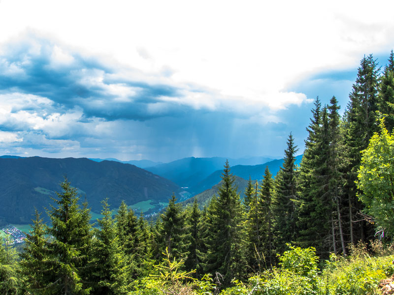 More down now, and first showers are drawing over the neighbouring Thalerkogel. They don´t reach us though.