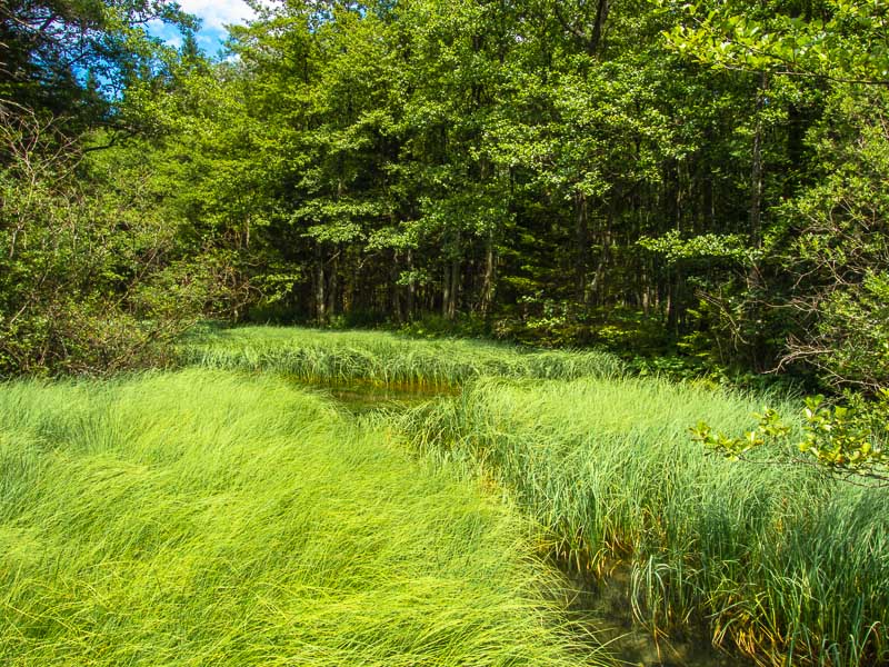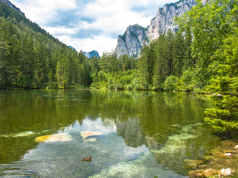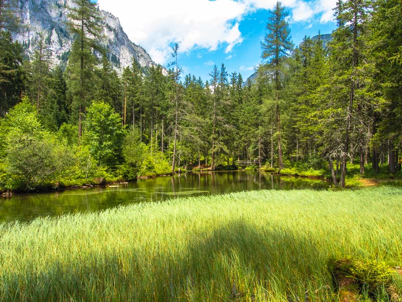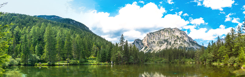 Panoramic picture of the Kreuzteich near the Green Lake, Tragöß. Click here or into the picture for a larger display.