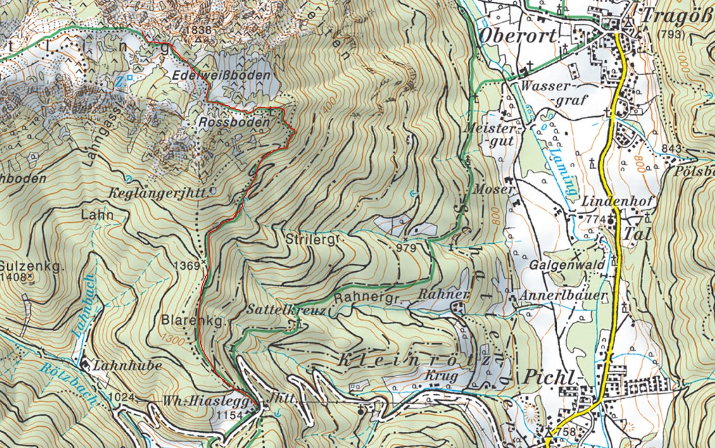 We start at the Hiaslegg inn, situated on a small saddle on a gravel road open to the public, between Tragöß and Trofaiach.