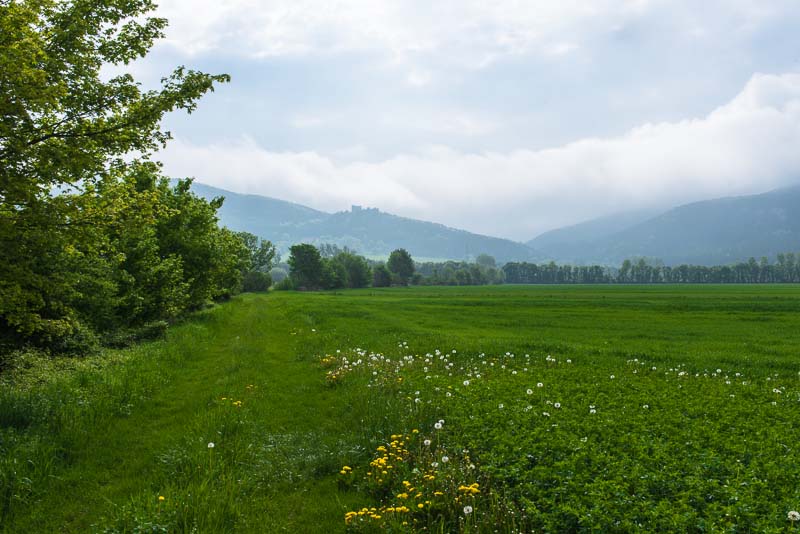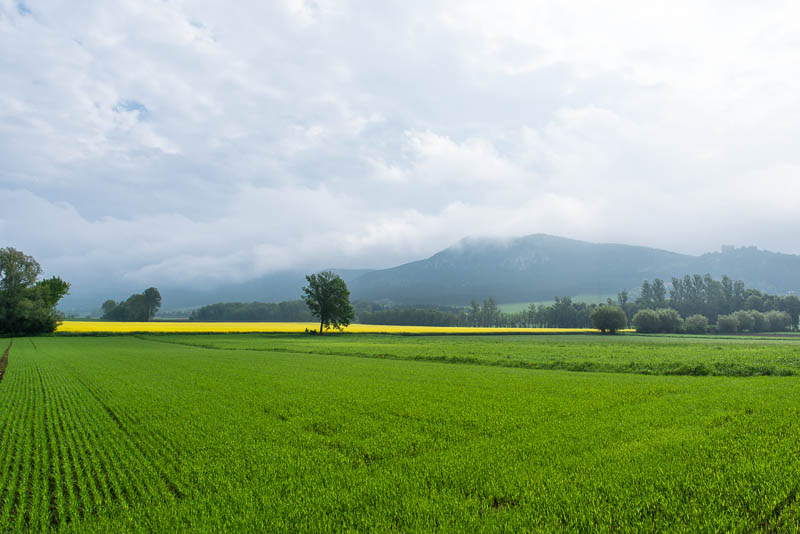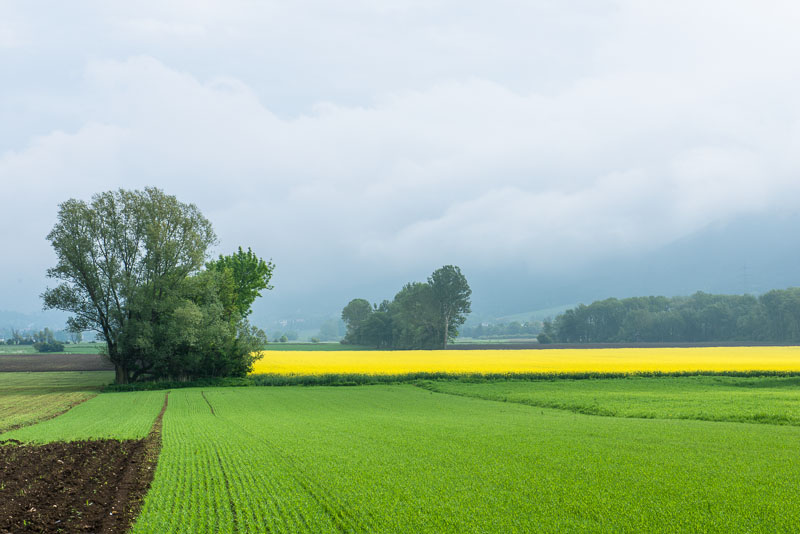 Während mein Auto in der Werkstätte ist, fahre ich ein wenig mit dem Mountainbike herum. Heute ist es aber sehr diesig, die Hohe Wand ist in Wolken gehüllt.