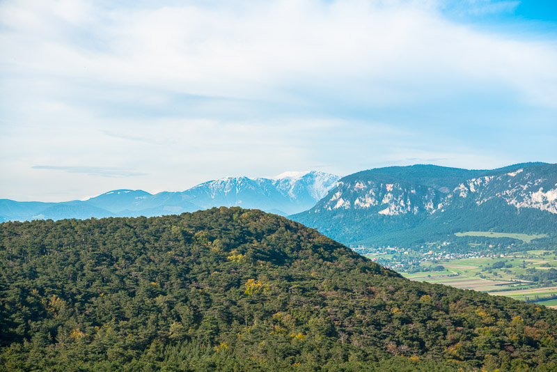 A bit farther, on the the highest point, and a bit to the Northeast, the view to Schneeberg is much better.