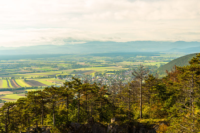 Northwestern panorama taken from Engelsberg summit, with Schneeberg and Hohe Wand. Click here or into the picture for a larger display.