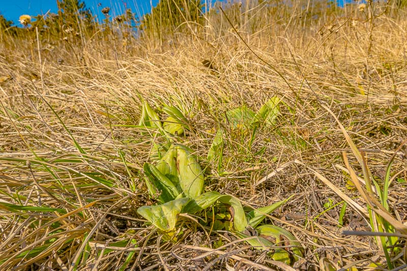 Blattrosetten der Riemenzungen - ich finde ca. 25 am Hang hinter der Lilienwiese.