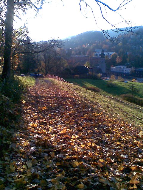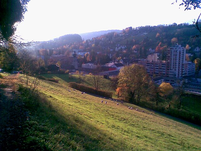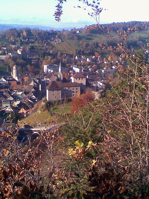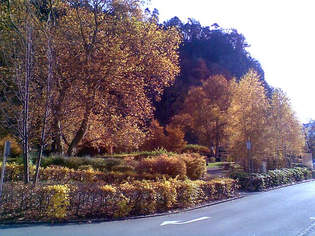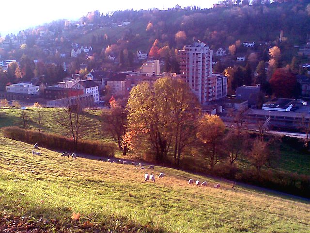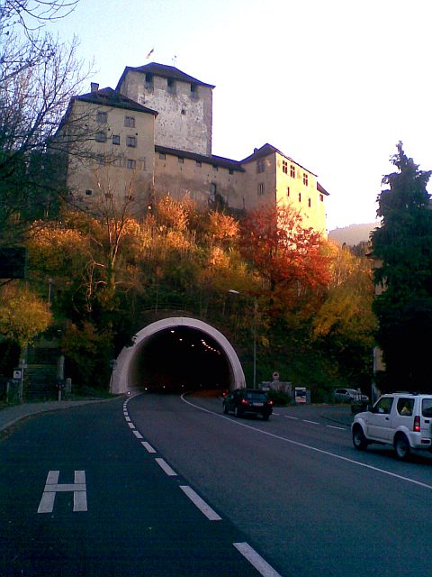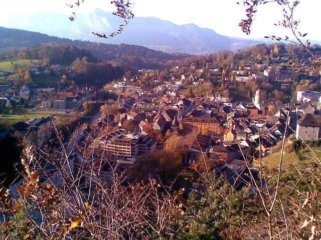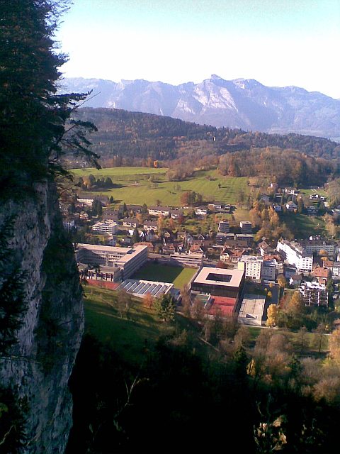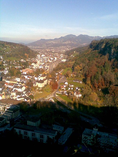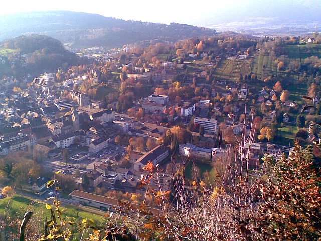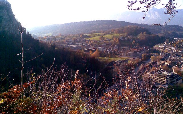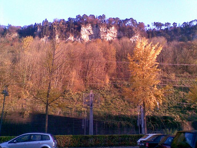 Auf Kongressreise in Feldkirch. Während der Großteil des Programms hochinteressant ist, betrifft der Freitag Nachmittag ein Gebiet, mit dem ich so gut wie nie in Berührung komme. Die Versuchung ist daher viel zu groß, den wunderbar milden und sonnigen Spätherbstnachmittag anders als im abgedunkelten Hörsaal zu verbringen. Ich wandere daher direkt vom Hotel weg auf die umliegenden Felsen, die die Stadt wie natürliche Stadtmauern umschließen. Ausführliche und übersichtliche Orientierungstafeln machen mir es leicht, wieder zurück zu finden.