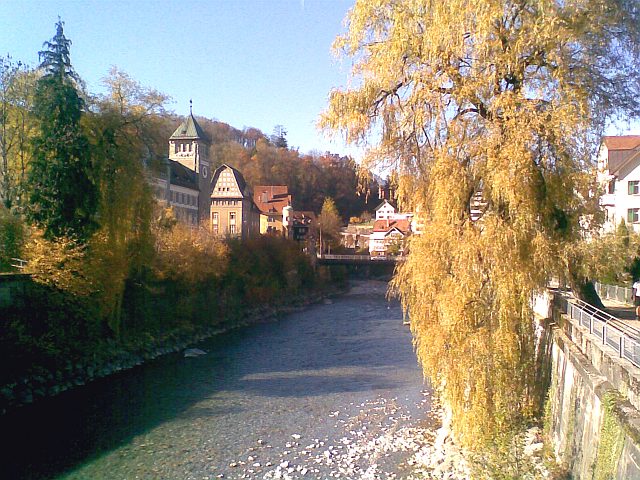 Zunächst einige Bilder vom 4.11.: Unser Hotel liegt fast direkt am Fluss Ill, der Kongress findet im Gebäude des Landeskonservatoriums statt, welches direkt gegenüber auf der anderen Seite des Flusses ist. Wir müssen daher eine dieser beiden Fußgängerbrücke überqueren.