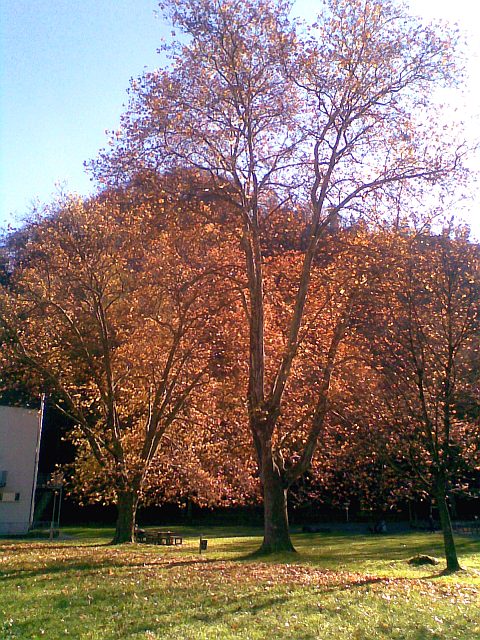 Wieder die Farbenpracht im Park, beim Weg zum Kongress. Diese Felsen im Hintergrund will ich besteigen.