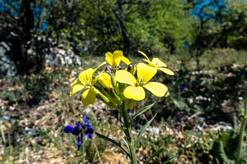 Am felsigen Trockenrasen des Südabhangs wächst Felsen - Goldlack (Erysimum sylvestre)
