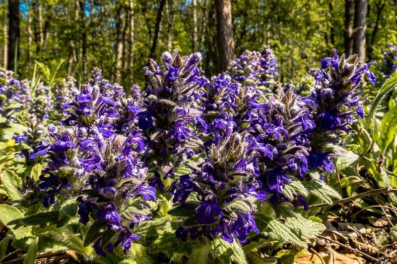 Am Waldrand wächst kriechender Günsel (Ajuga reptans)