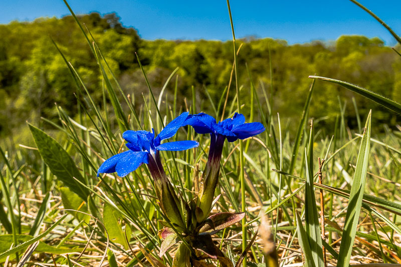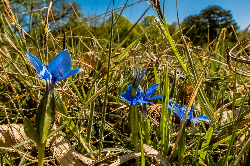 Vereinzelt blüht auf der Zweiwiese der Frühlings - Enzian (Gentiana verna)