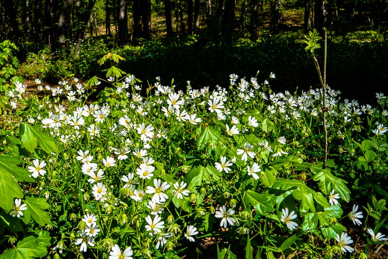 Große Sternmieren (Stellaria holostea) zur Begrüßung gleich nachdem ich denm Wald betrete.