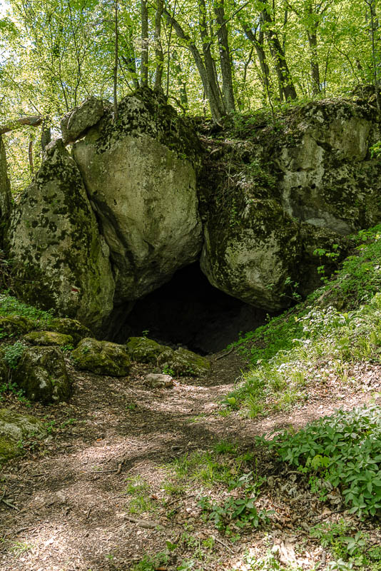 Nach einiger Suche (weil ich wegen des Bärlauchs vom Weg weg bin) finde ich auch die Hoffmannshöhle - die nur ein kleines Loch im Felsen ist, ...