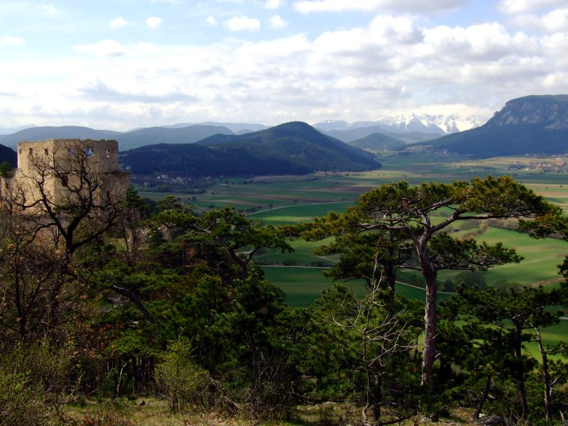 Ruin Emmerberg, in the centre of the background is Kienberg, to the right behind is Krumbachstein and Schneeberg.