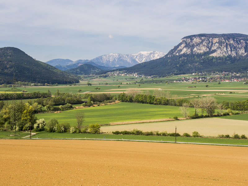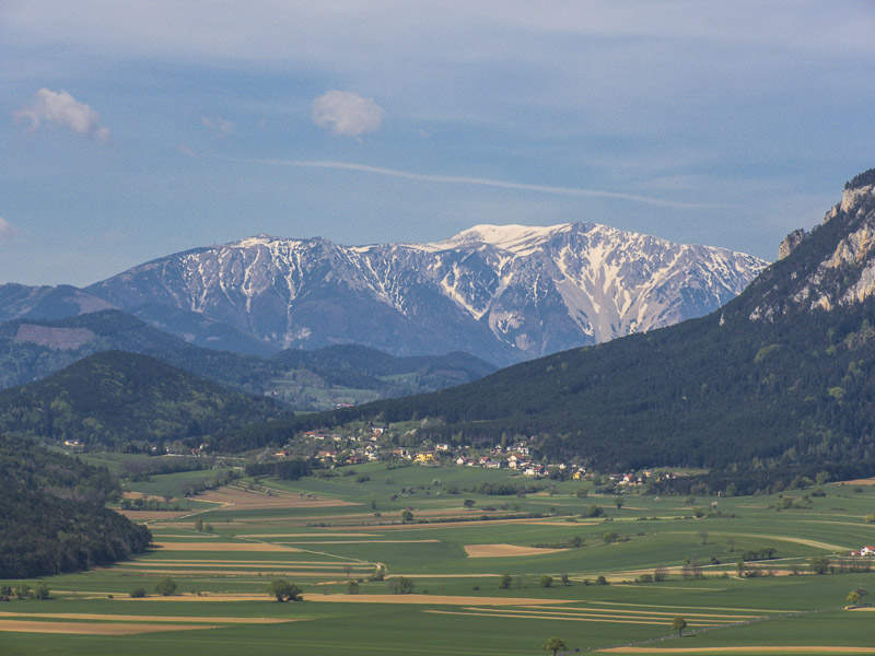Blick zur Hohen Wand. Dort unten beim Haus wartet schon mein Auto.