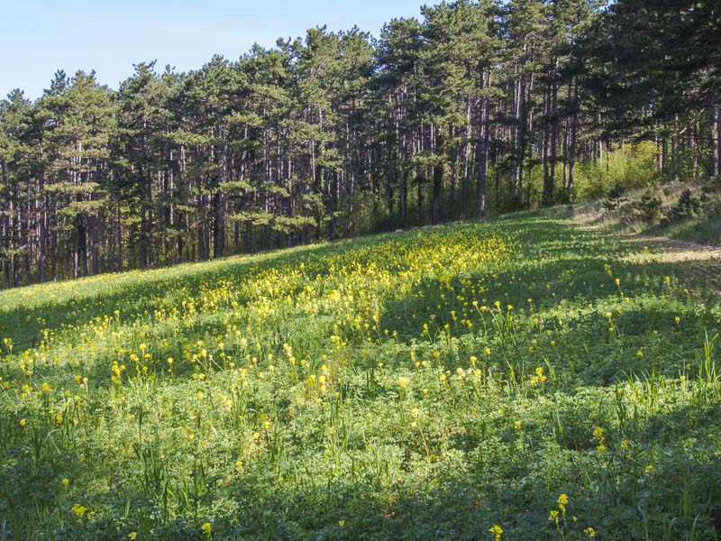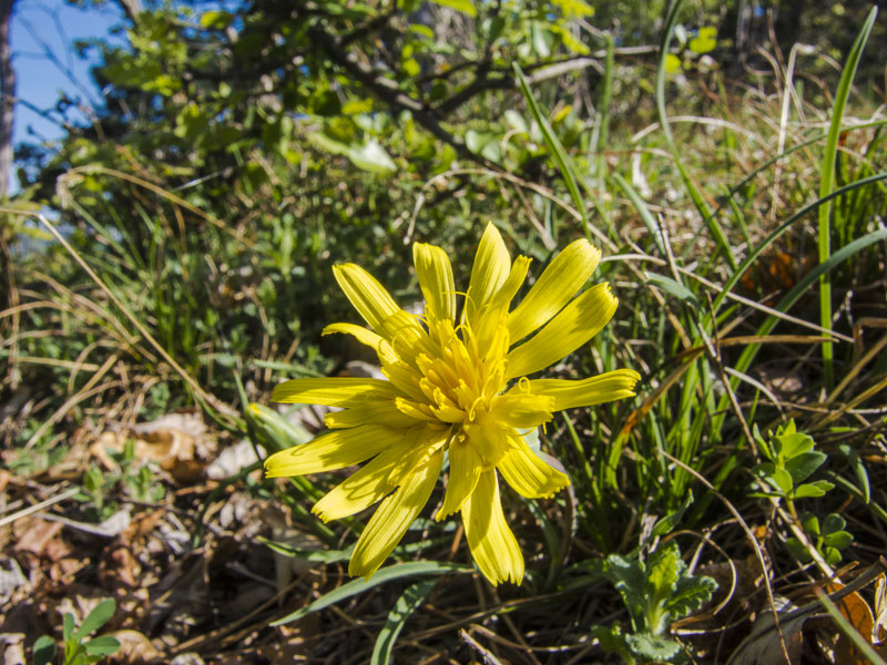 Österreichische Schwarzwurzel (Scorzonera austriaca) auf einem kleinen Wiesenfleck im Wald oberhalb der Ruine Emmerberg.