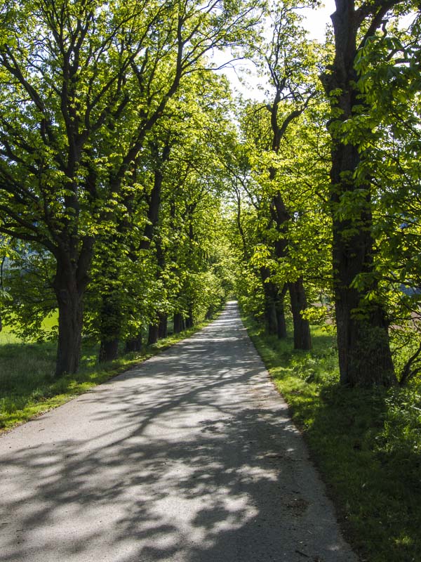 Kastanienalle vom Forsthaus zur Straße hinunter.
