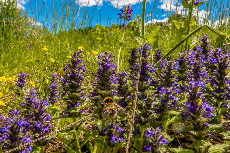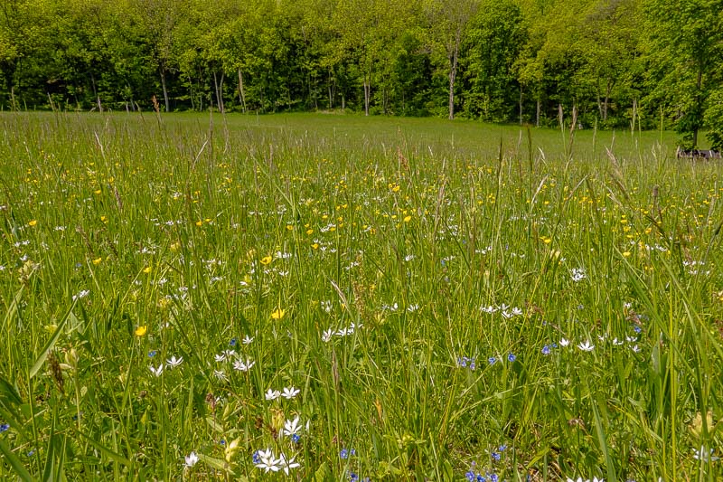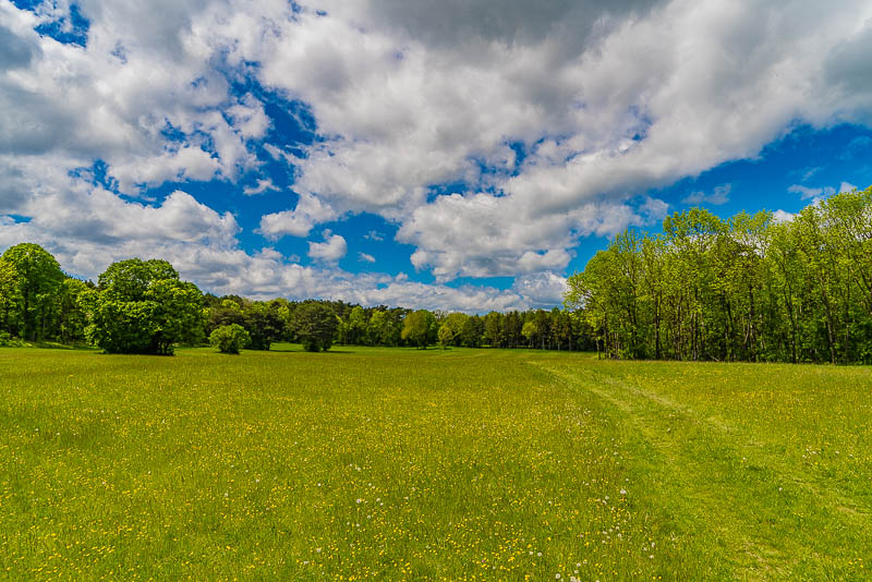 Die andere, zweite und größere Wiese ist botanisch vollkommen uninteressant, sie scheint regelmäßig gedüngt zu werden und bietet, bei aller lanschaftlichen Schönheit, nur die üblichen Hahenfüße und Gräser - eine Viehfutterplantage.