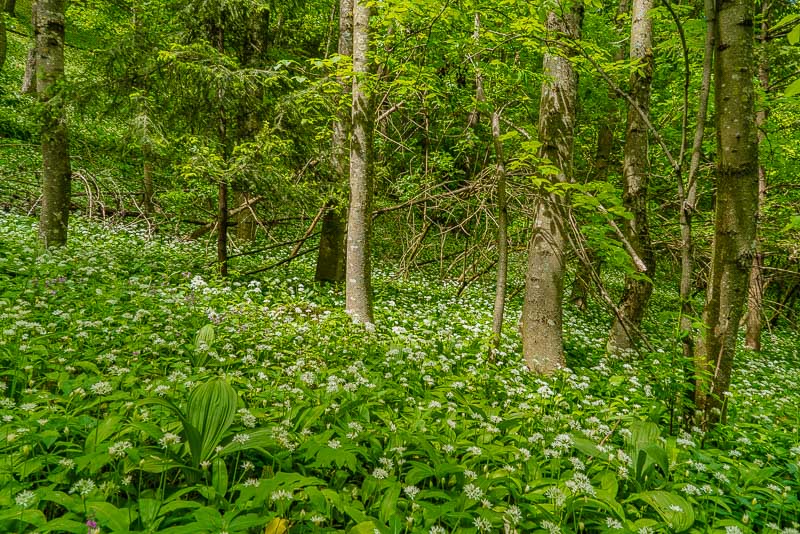 Im Wald Richtung Hoffmannshöhle blüht der Bärlauch in Mengen.