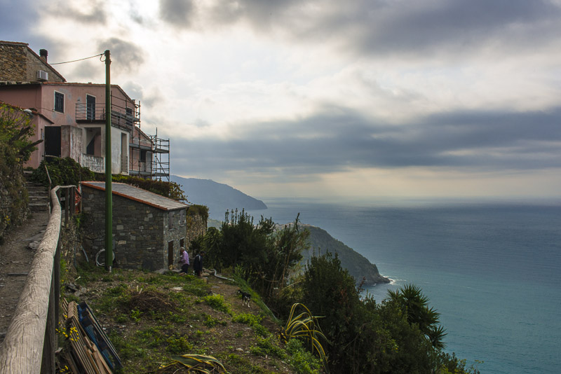 Beim dritten der Dörfer, Corniglia, steige ich aus. Die ersten beiden Dörfer sind derzeit unten nach großen Erdrutschen nicht durch Wege miteinander verbunden. Man hat mir abgeraten, es oben herum zu versuchen, weil man da viele hundert Meter hinauf und wieder hinunter muss, um die jeweiligen Dörfer zu besuchen. Ich wandere daher von Corniglia nach Vernazza und weiter nach Monterosso.