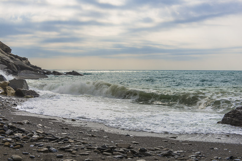 Da ich eine halbe Stunde Zeit habe, bis der nächste Zug nach La Spezia geht, spaziere ich noch ein wenig am Strand entlang.