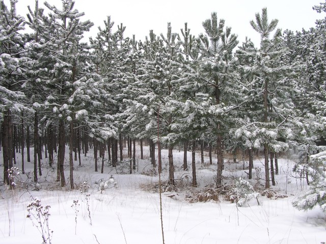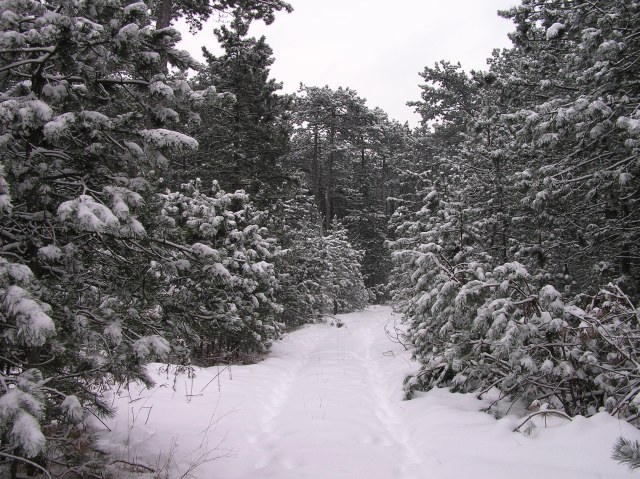 In der Nacht hat es zu schneien begonnen, und trotz des fehlenden Sonnenscheins ist der ebene Schwarzföhrenwald, der sich zwischen Wiener Neustatd, Neunkirchen, Weikersdorf und Schwarzau ausbreitet, wie ausgewechselt
