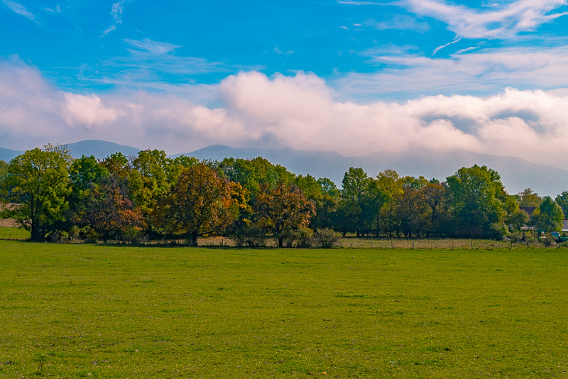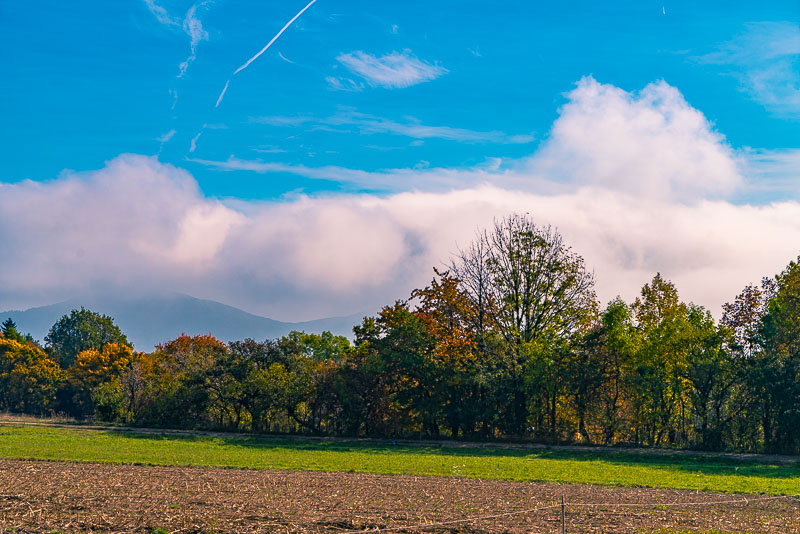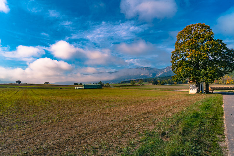 Beim Frankenhof sind die Fischauer Berge nicht zu sehen - vom Nebel verschluckt.