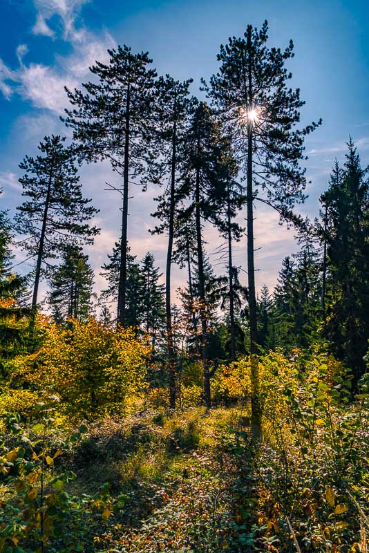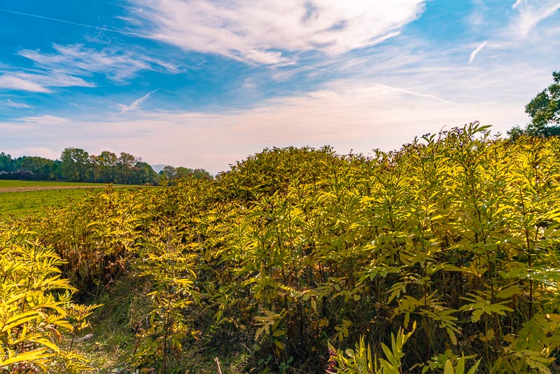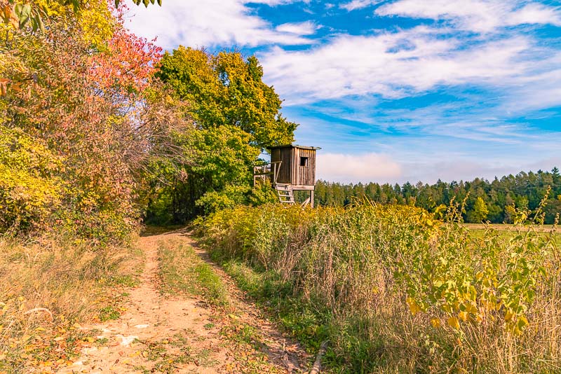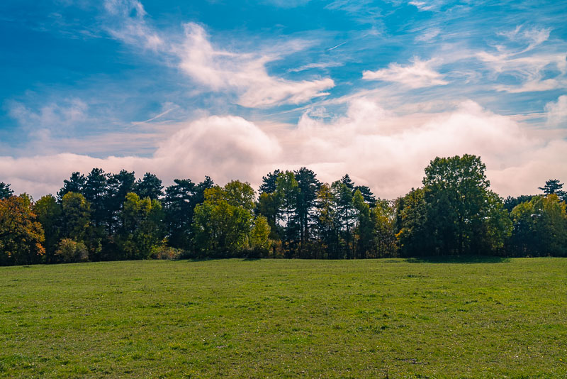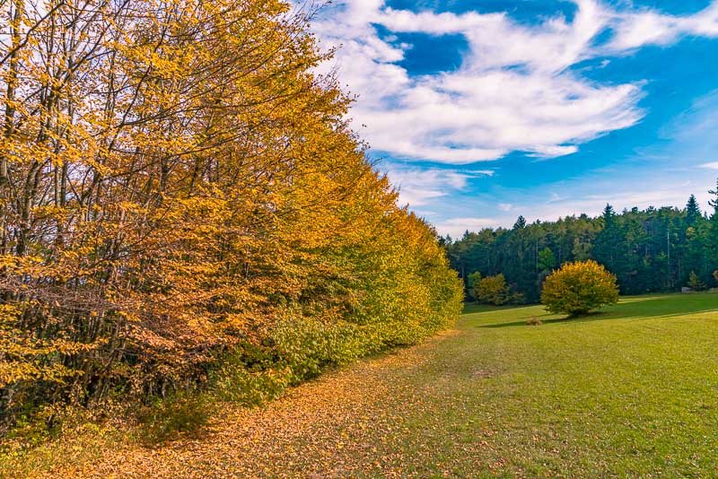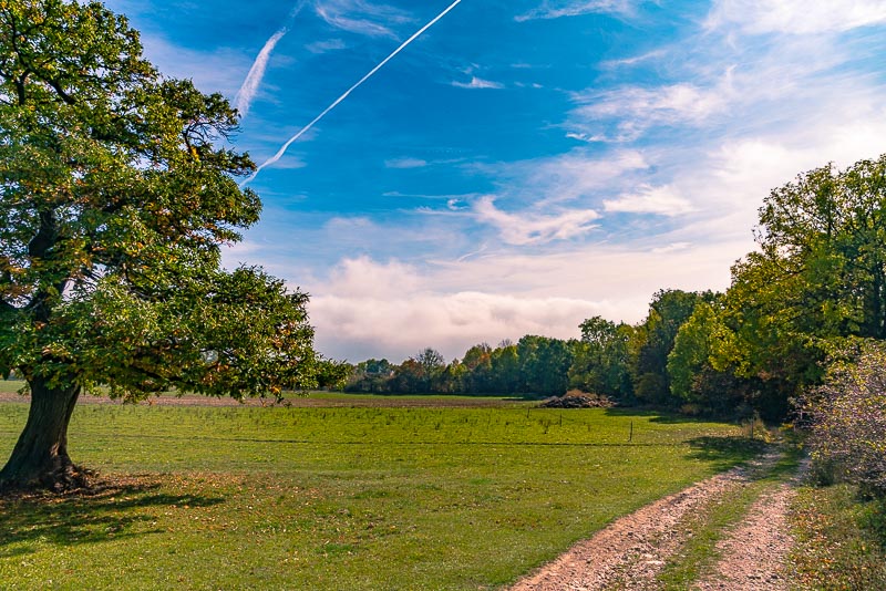 Ich gehe einen Weg am Waldrand entlang zunächst nach links.
