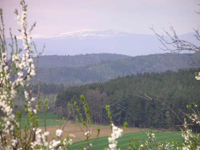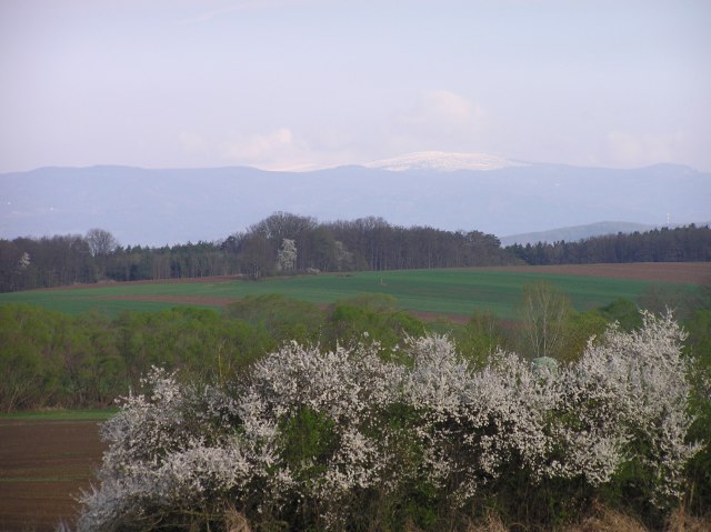 Near Bad Tatzmannsdorf: View to Hochwechsel, covered with new snow