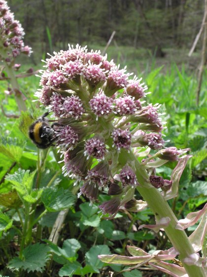 Butterbur amidst lots of stinging-nettles. In summer it would be impossible to walk here