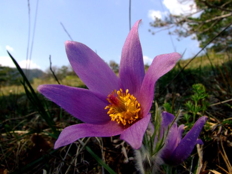 Im kühleren Schatten von Bäumen finden sich noch späte Blüten der Küchenschellen (Pulsatilla grandis), die ansonsten bereits verblüht sind.