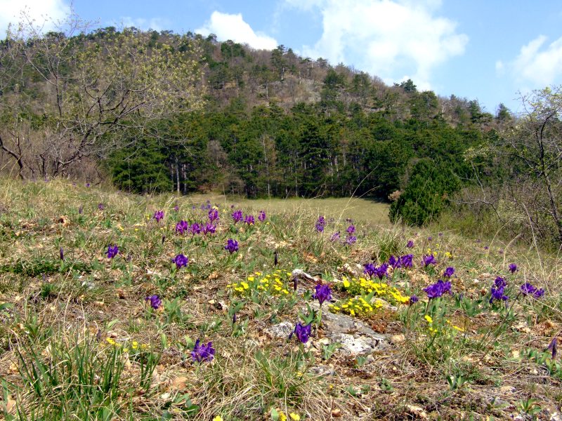 Noch zwei weitere Tage ist das Wetter schön geblieben, für morgen ist allerdings Regen und Kälte angesagt. Ich nütze daher eine freie Stunde zu Mittag, um den mystischen Trockenrasenplatz bei Brunn aufzusuchen, wo jedes Jahr tausende Zwerg - Schwertlilien (Iris pumila) blühen. Ich habe vormittags neben der Straße blühenden Schlehdorn gesehen ...