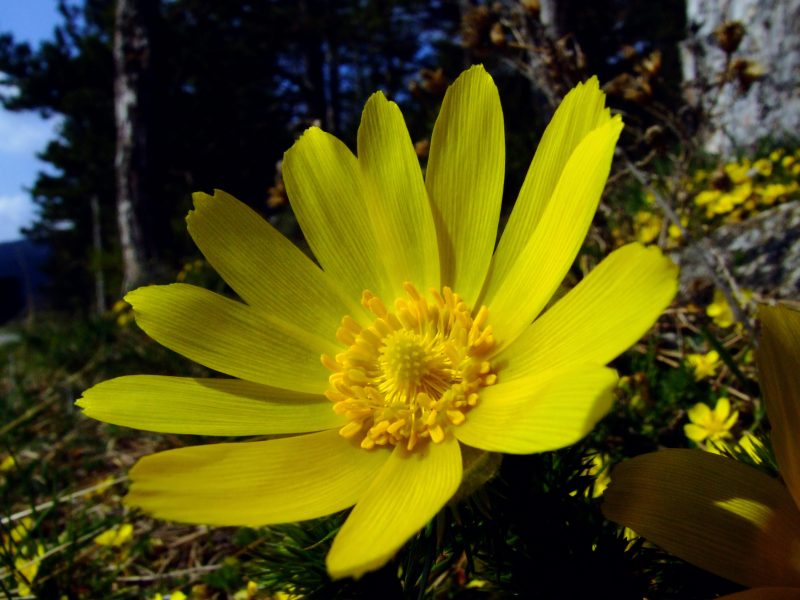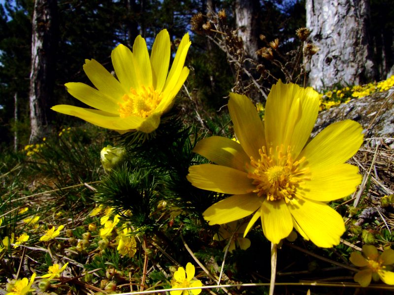 Ein Stück weiter in Richtung Brunn blühen im Wald neben dem Weg auch Adonisröschen (Adonis vernalis), denen ich natürlich auch einen Besuch abstatten muss.