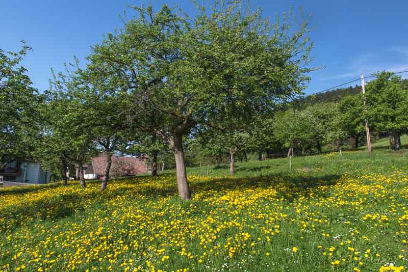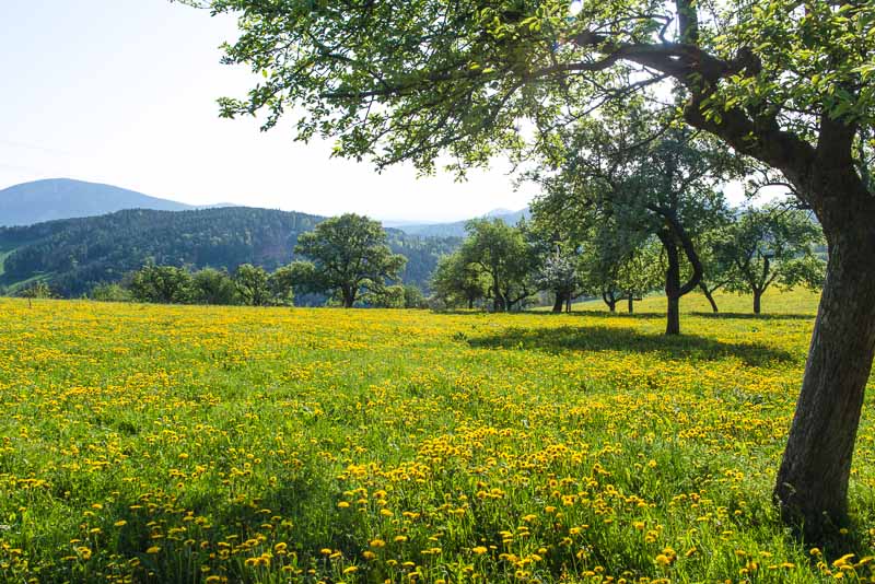Streuobstwiese near Gasteil - abundantly flourishing dandelions.