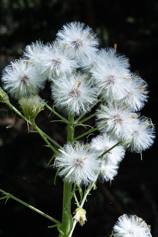 Beim Abstieg durch den Wald sehen wir schon Fruchtstände der White butterbur (Petasites albus)