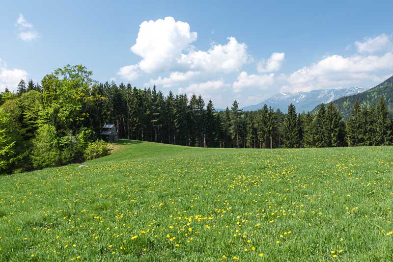 Back at the car at 10 am, so at my suggestion, we drive a few kilometers to Prigglitz and walk up to the Gahnshauswiese, which I have found in the map (without knowing the name) and had expected it to contain an interesting flora.