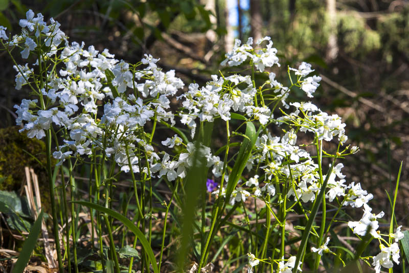 Wir sind ein kleines Stück weiter gefahren und wandern nun zur Gahnshauswiese. Im Wald unterwegs das Kleeblättrige Schaumkraut (Cardamine trifolia) ...