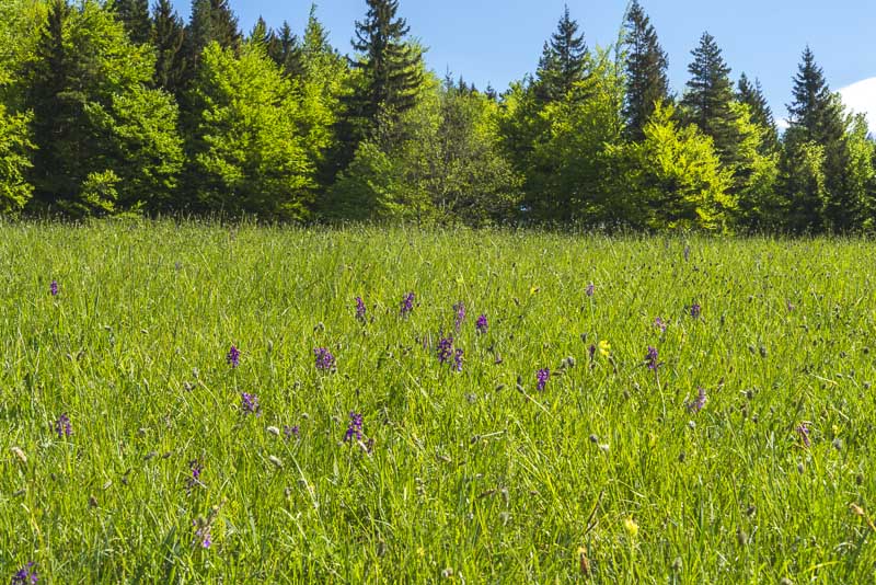 Hier wachsen auch heuer wiese tausende Kleine Knabenkräuter (Orchis morio)
