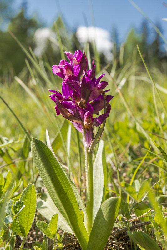 Aber die ersten Holunderknabenkräuter (Dactylorhiza sambucina) blühen doch schon. Hier eines der wenigen roten Exemplare.