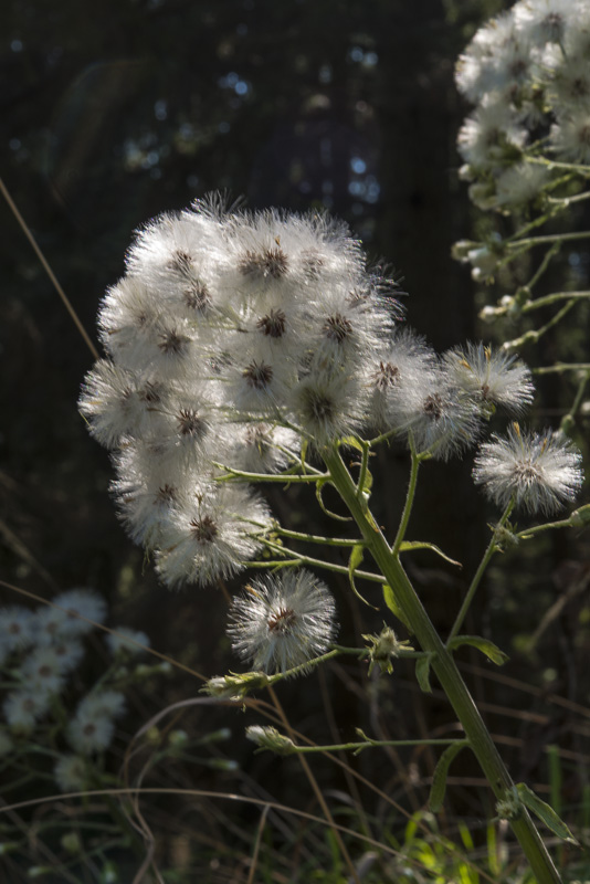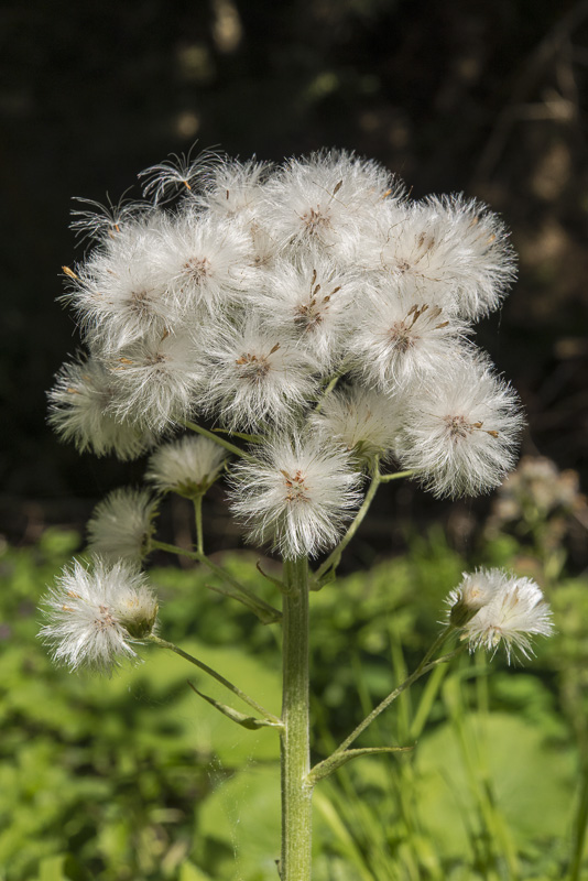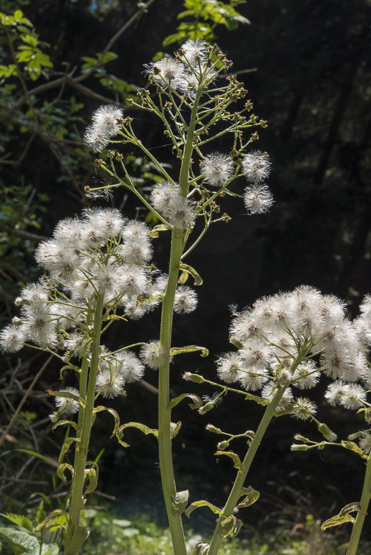 Die weiße Pestwurz (Petasites albus) hat jetzt hübsche Fruchtstände.