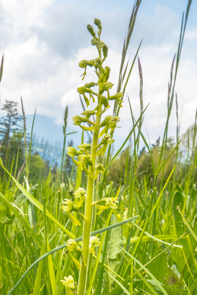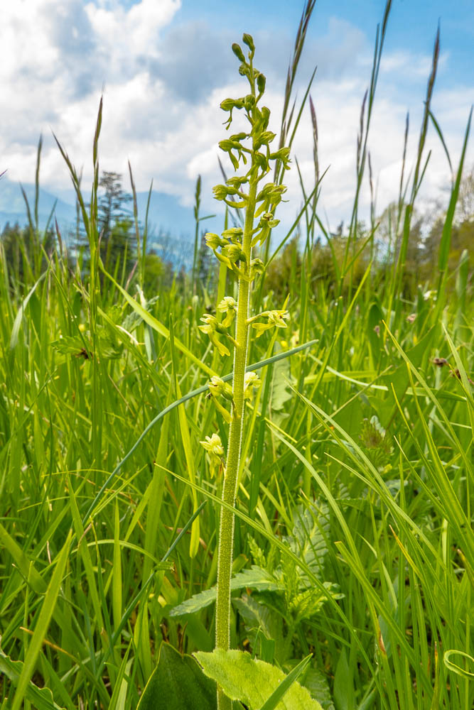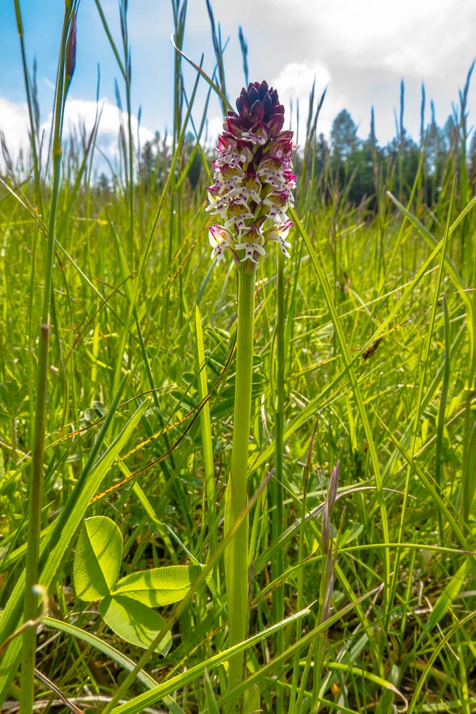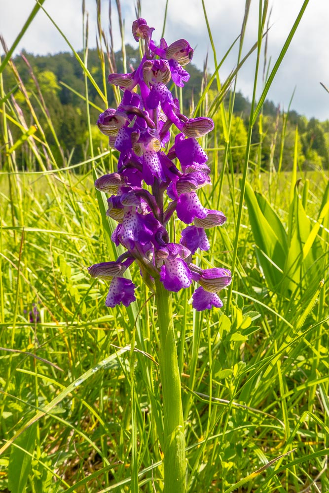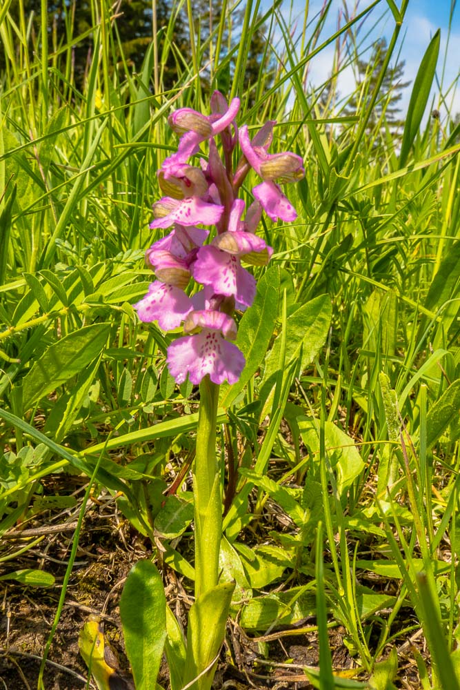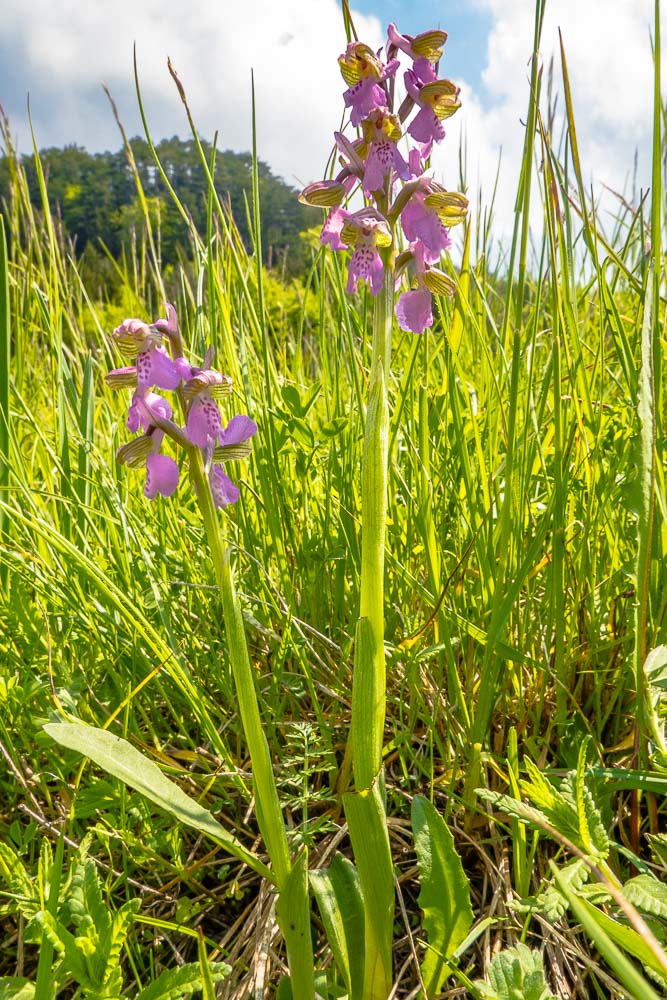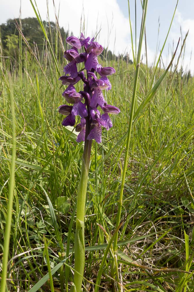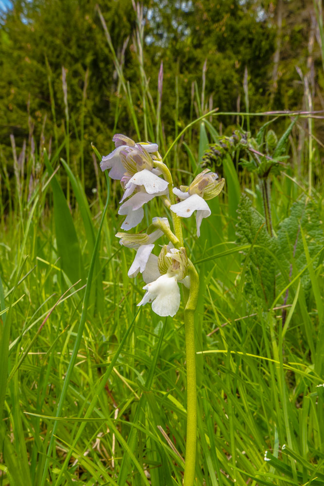 We drive to the water reservoir above Prigglitz, where we start our walk to the Gahnshaus meadow. At an altitude of 915 m asl, military orchid (Orchis militaris) just starts to flowrish.