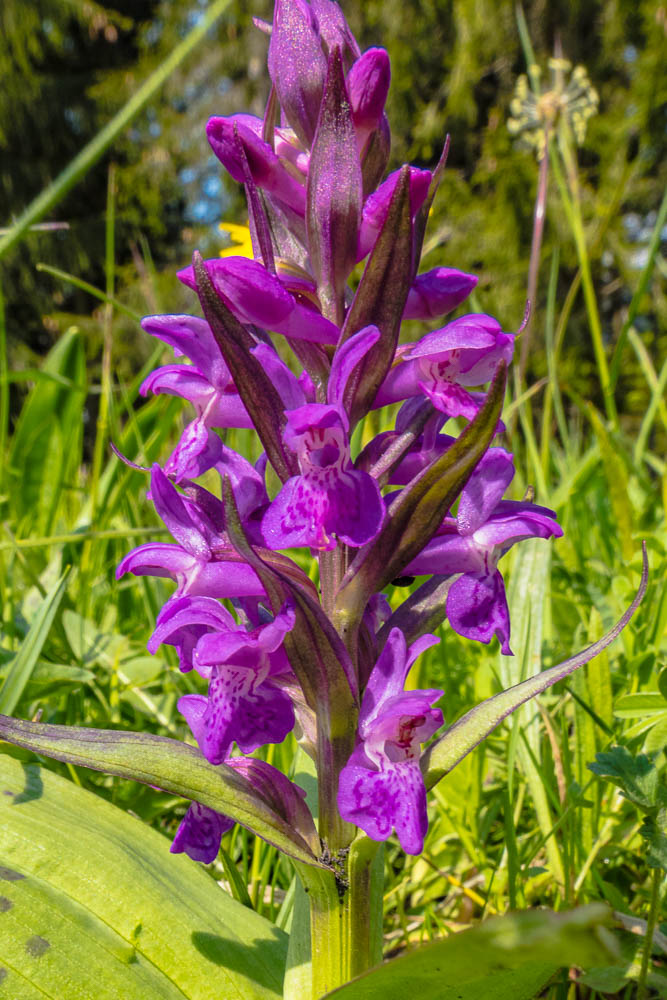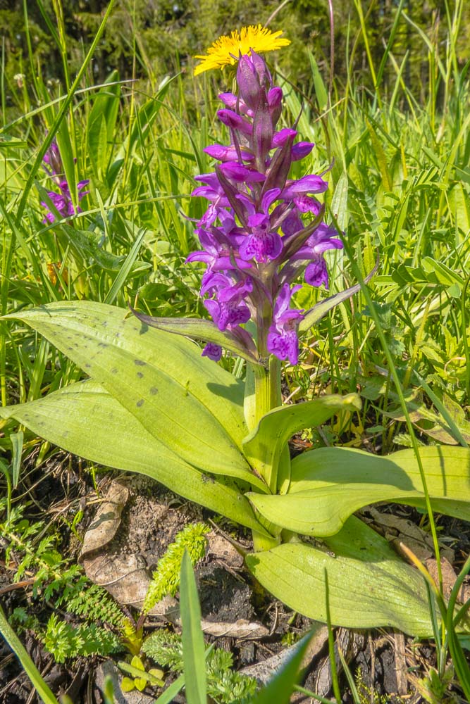 Near a well, there are some exemplars of the Moorland spotted orchid (Dactylorhiza majalis).