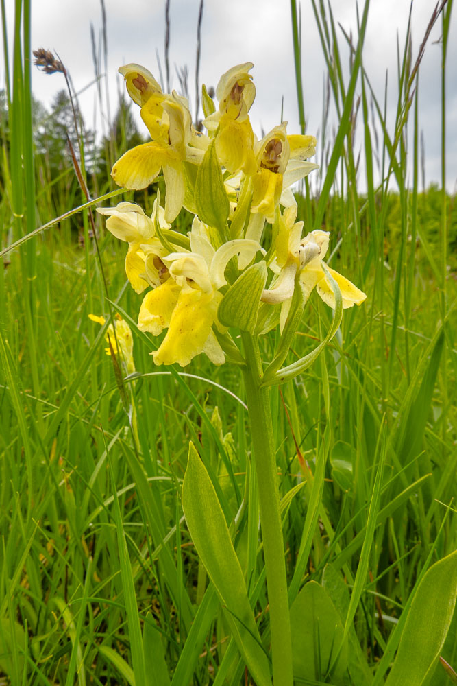 After descent, we drive back to Gasteil and walk up to the Kleewiese ("clover meadow") Here are hundredes of elder-flowered orchids (Dacytlorhiza sambucina), mainly in yellow.