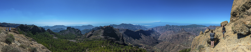 Panorama vom Felsplateau beim Roque Nublo mit Blick zum Teide auf Teneriffa. Hierher oder ins Bild klicken für eine größere Darstellung.