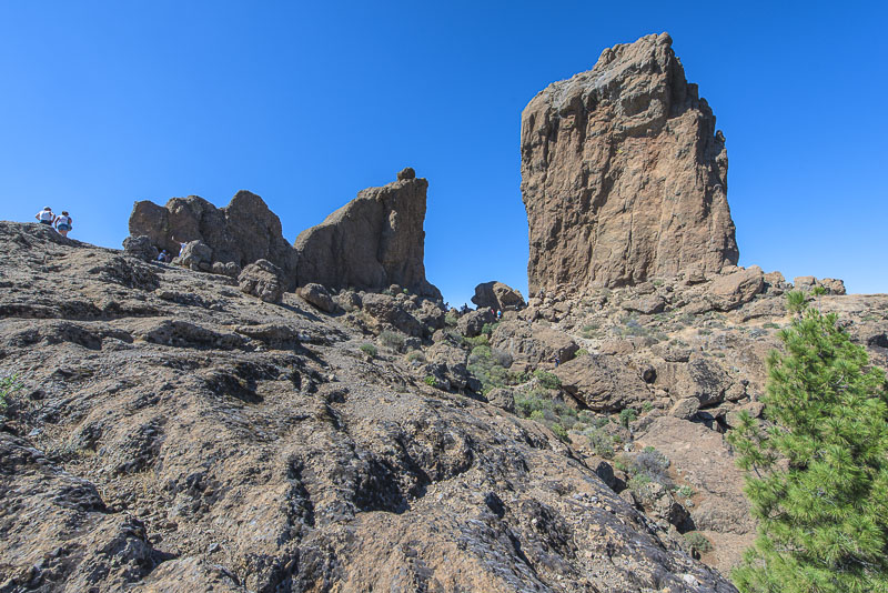 Am Bergkamm schließlich ein riesiges Felsplateau, aus dem die beiden Felsen herausragen - der kleinere Roque Rana und der größere Roque Nublo.