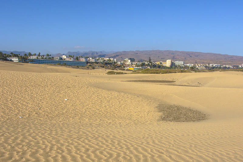 Dahinter das Industriegebiet von Maspalomas: die Tourismusindustrie schachtelt hier Menschenmaterial dicht an- und übereinander.