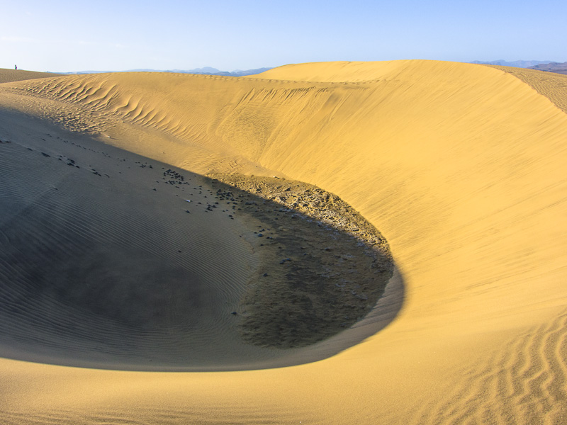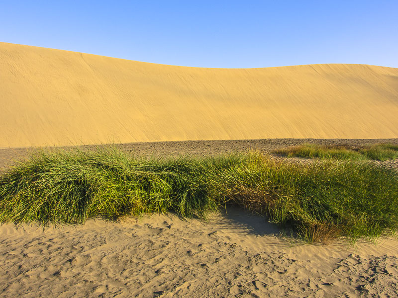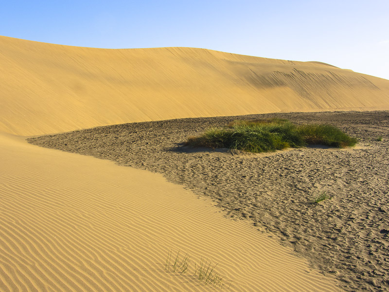 Der Wind verfrachtet hier den feinen Sand zu riesigen Dünen, fast wie in der Sahara, aus der zumindest ein Teil des Sandes stammt (durch Windverfrachtung).