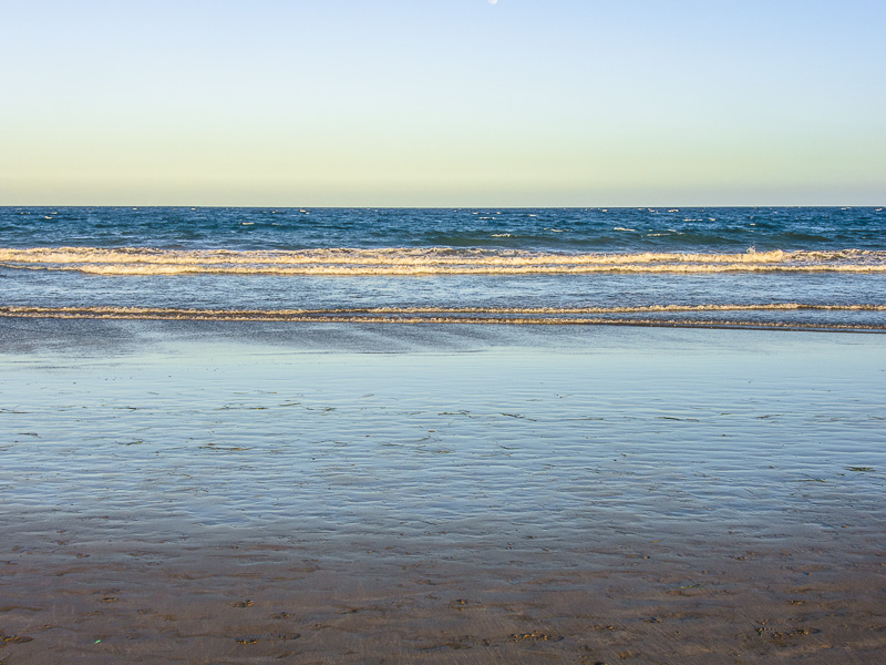 Ich habe Lucy bei den anderen abgeliefert und gehe noch einmal im Abendlicht an den Strand, ...