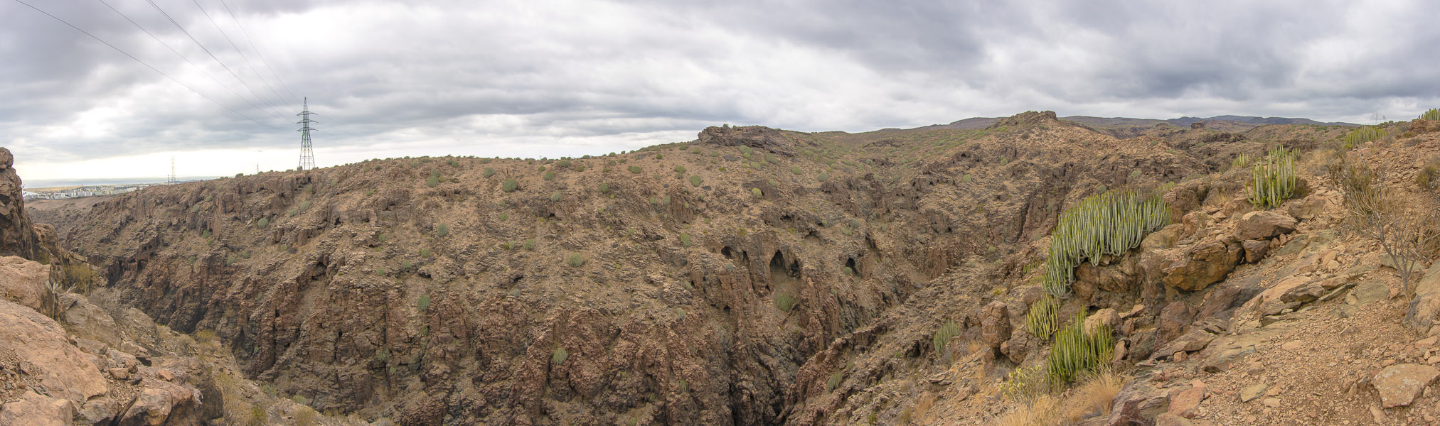 Panoramabild des Barranco del toro. Links im Hintergrund die Dünen von Maspalomas.