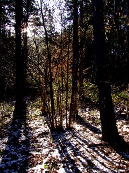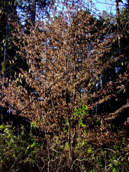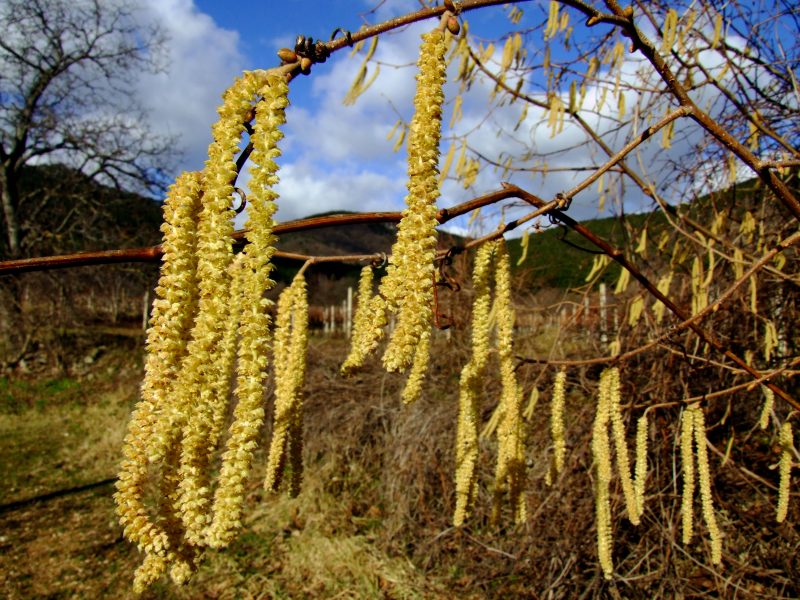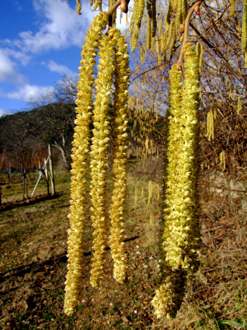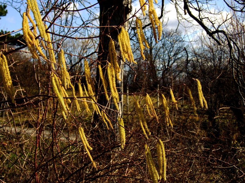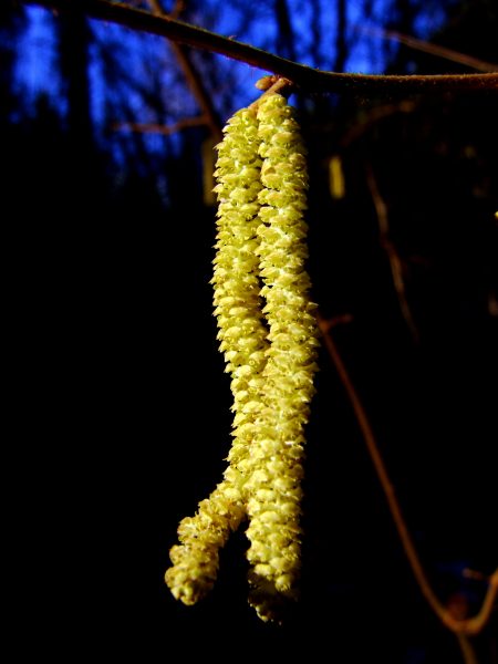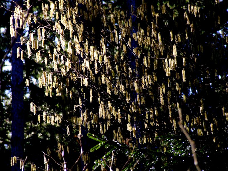 Es geht nun wieder durch den Wald weiter: blühende Haselbüsche ...