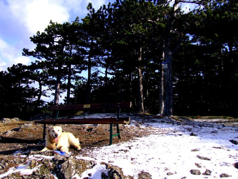 ... mit einer Bank, die zur Rast einlädt. Heute allerdings bläst ein scharfer Wind, ich halte mich daher hier nicht länger auf.